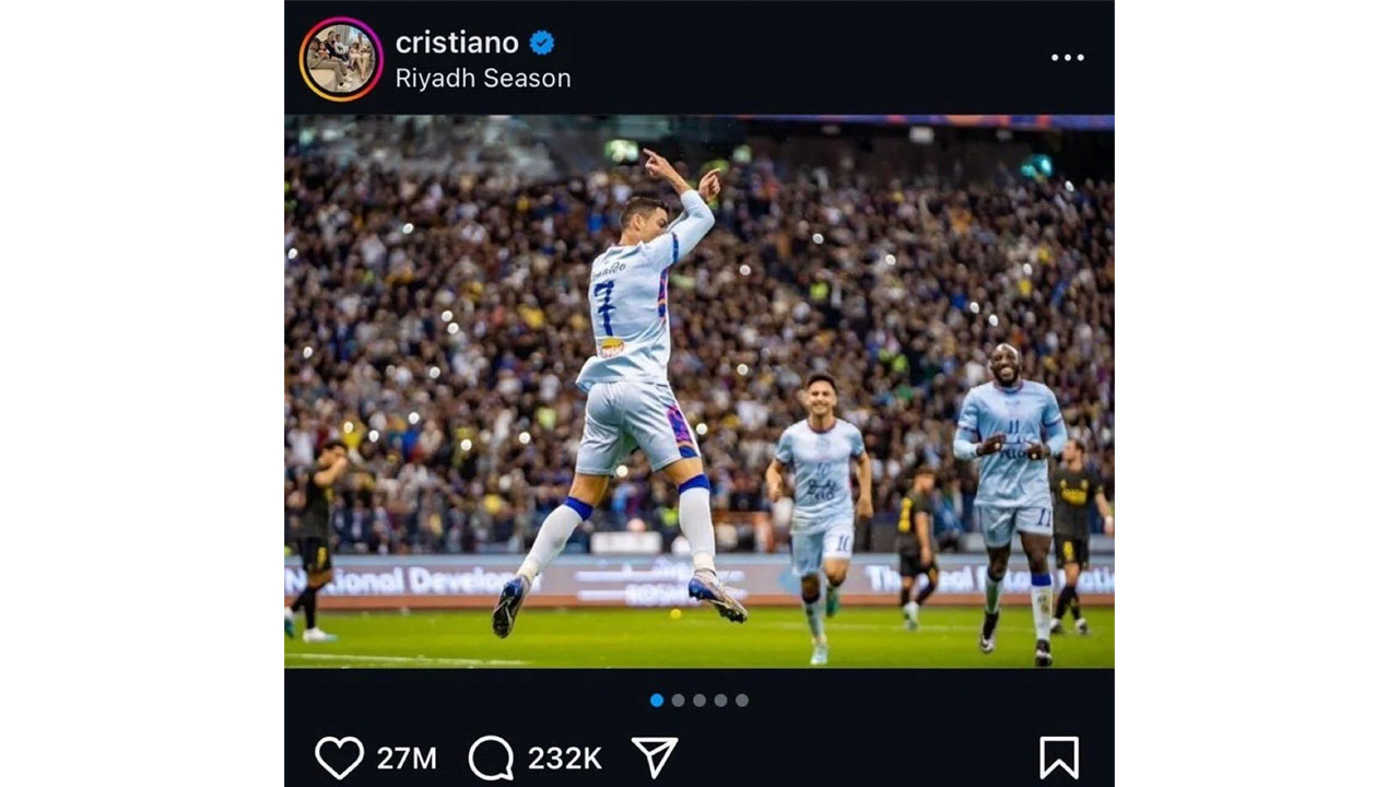 Cristiano Ronaldo’nun Riyad ST XI - PSG karşılaşmasından paylaştığı bu görsel milyonlarca beğeni aldı. (27 Milyon Beğeni)