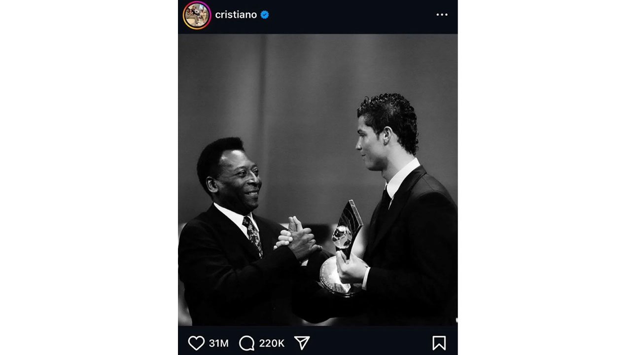 Ronaldo, hayatında etkili ve önemli bir figür olan Kral Pelè'yi anıyor. (31 Milyon Beğeni)