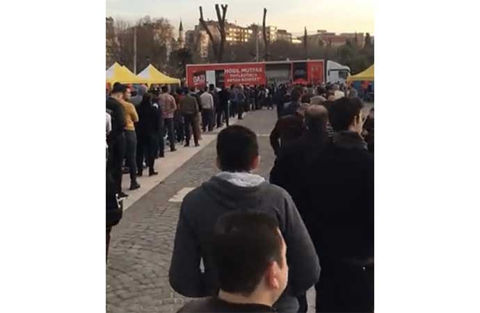 Sözcü'den Ahmet Kaya'nın haberine göre; Geçtiğimiz yıllarda çeşitli semtlerde belediyeler tarafından kurulan iftar çadırlarının sayısı azaltılırken, Demokrasi Meydanı'ndaki Büyükşehir Belediyesi'nin iftar çadırında ise uzun kuyruklar oluştu.