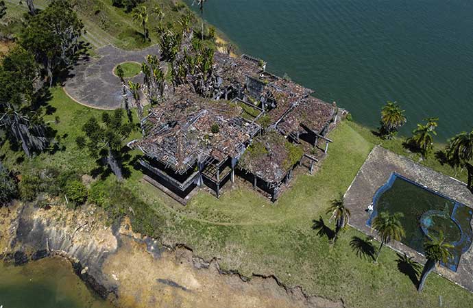 Ancak, 1993 yılında, Escobar'ın mirasının tüm izlerini silmeye çalışan rakip uyuşturucu çetesi PEPES tarafından yakılıp harap edilen malikanenin kaderi karanlık bir hal aldı.