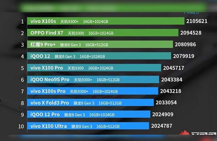 Mayıs ayının en güçlü telefonları: Vıvo X100s - Oppo Find X7 - Red Magic 9 Pro+ - iQOO 12 - Vıvo X100 Pro - iQOO Neo 9S Pro - Vıvo X100s Pro - Vıvo X Fold 3 Pro - iQOO 12 Pro - Vivo X100 Ultra