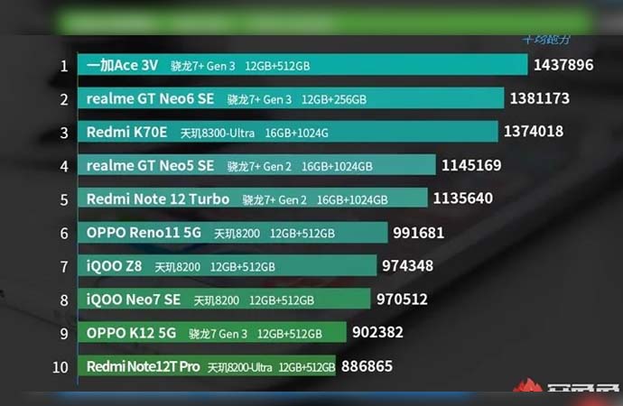 Mayıs ayının en güçlü bütçe odaklı telefonları: OnePlus Ace 3V - Realme GT Neo 6 SE - Redmi K70E - Realme GT Neo5 SE - Redmi Note 12 Turbo - Oppo Reno 11 5G - iQOO Z8 - iQOO Neo 7 SE - Oppo K12 5G - Redmi Note 12T Pro