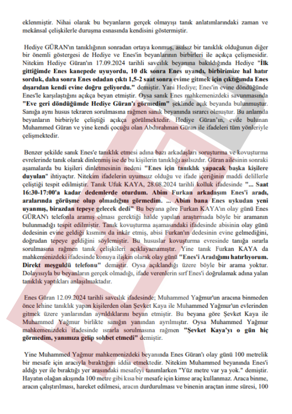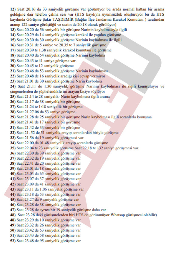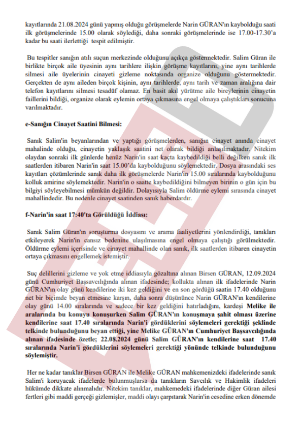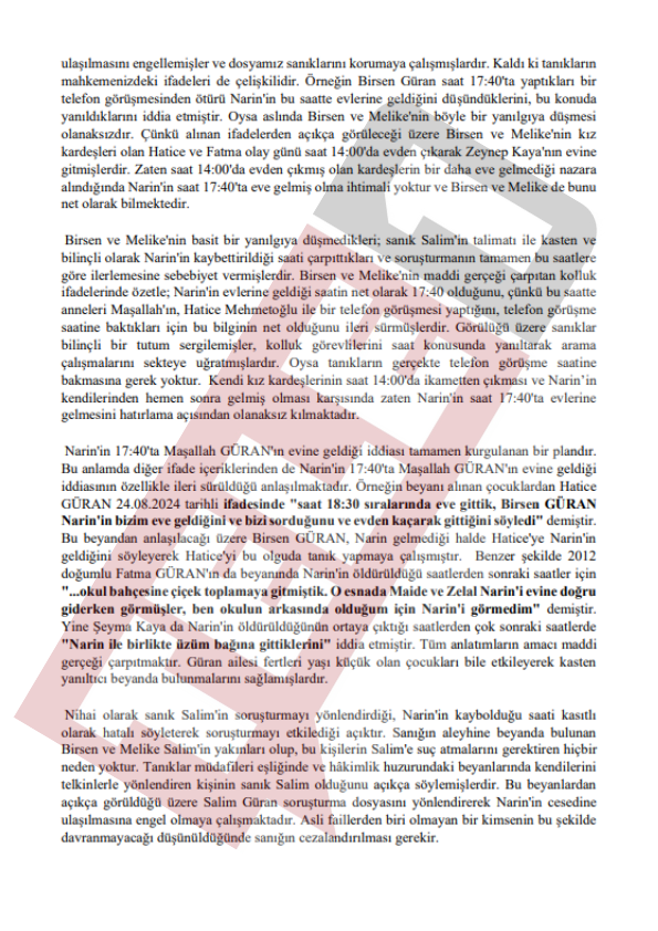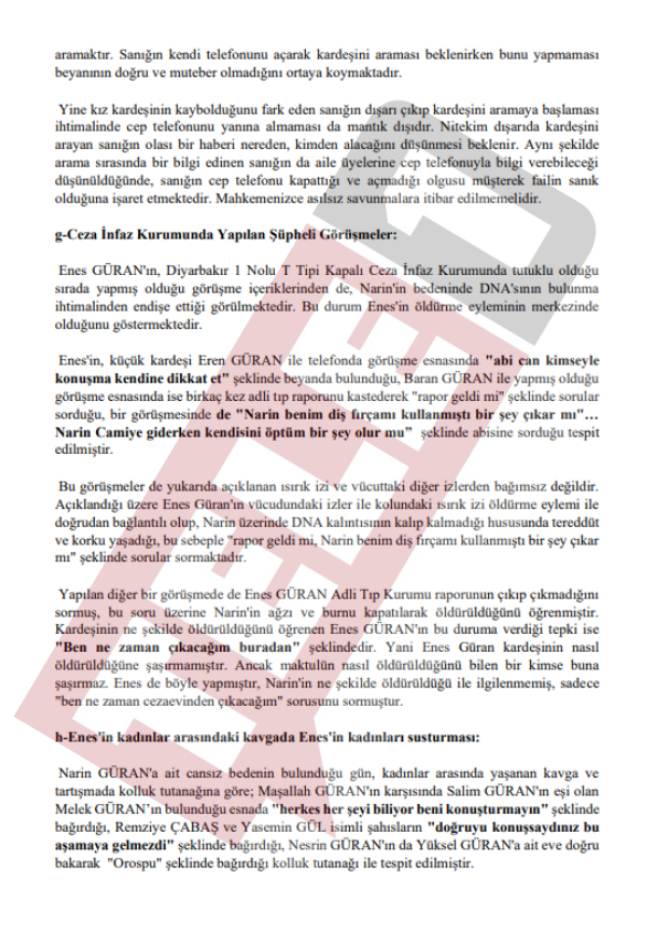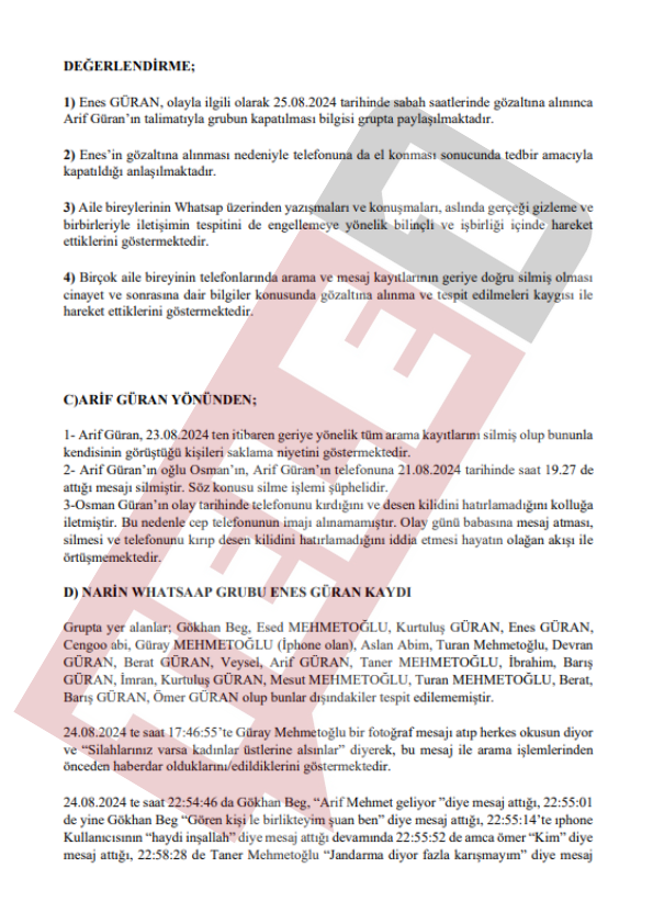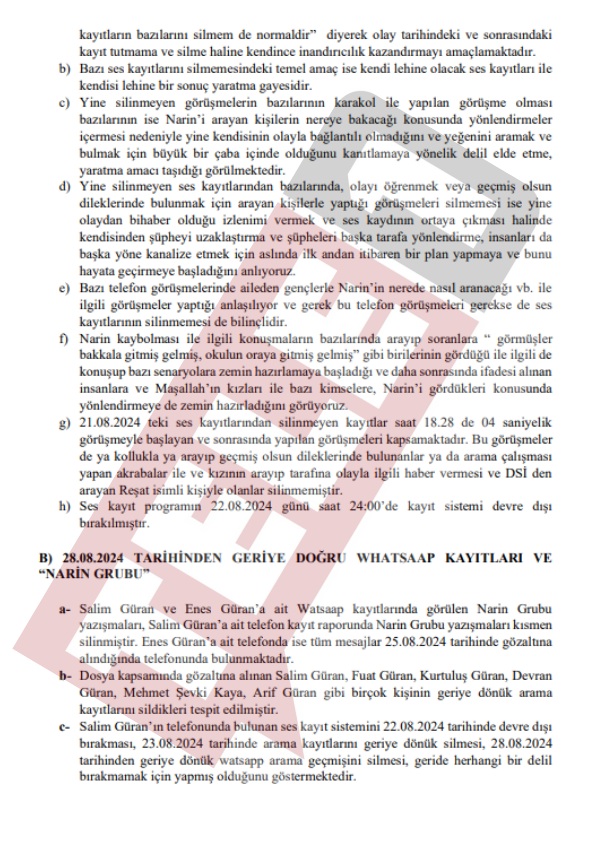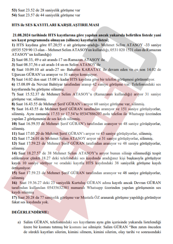 Baro tarafından mahkemeye sunulan beyanda "Salim Güran, Fuat Güran, Kurtuluş Güran, Devran Güran, Mehmet Şevki Kaya, Arif Güran gibi birçok kişinin geriye dönük arama kayıtlarını sildikleri tespit edilmiştir" ifadeleri kullanıldı.