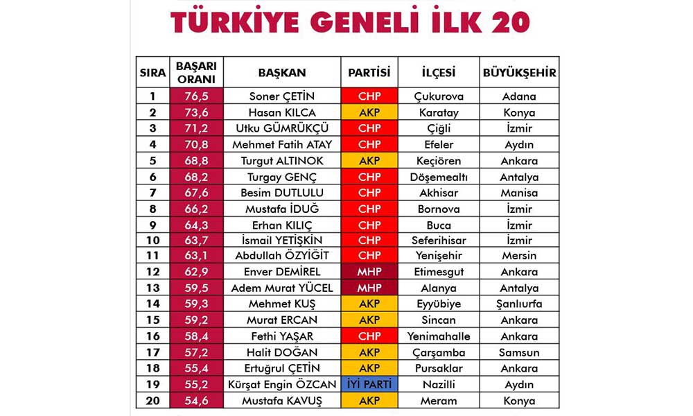 İşte seçimin 1. Yılında en başarılı belediye başkanları