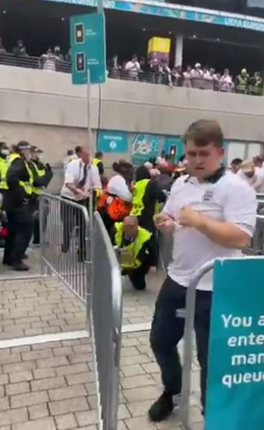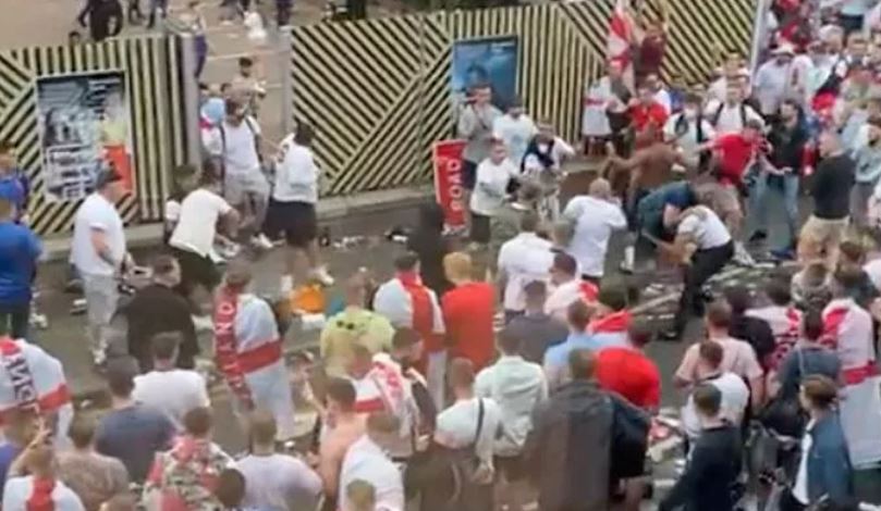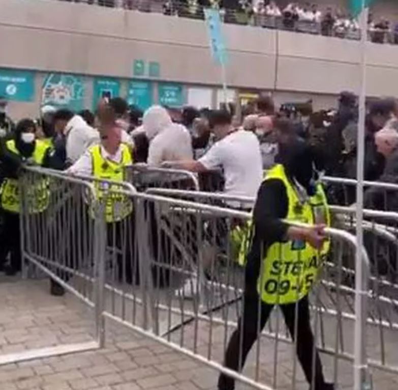 Benzer bir girişimi yarı finalde Danimarka maçı öncesi yapan bileti bulunmayan İngilizler, bariyerleri aşıp stada girmeye kalkışınca arbede yaşandı.