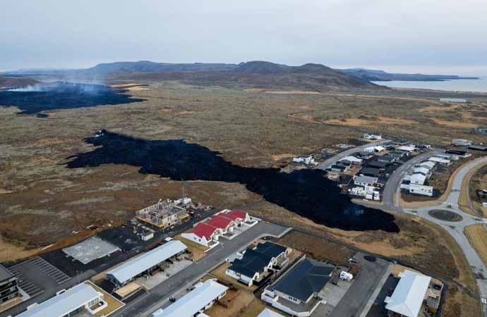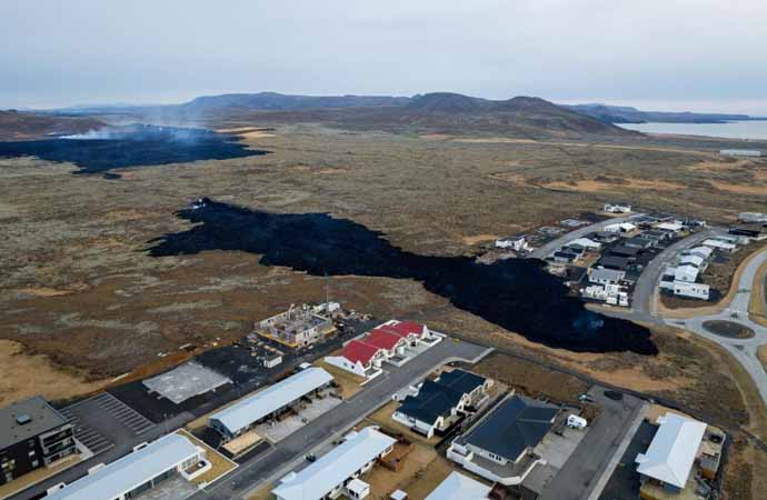 Atlas Okyanusu'ndaki ada ülkesi İzlanda'da yanardağ patlamasının ardından kasabaya ulaşan lavlar havadan görüntülendi.