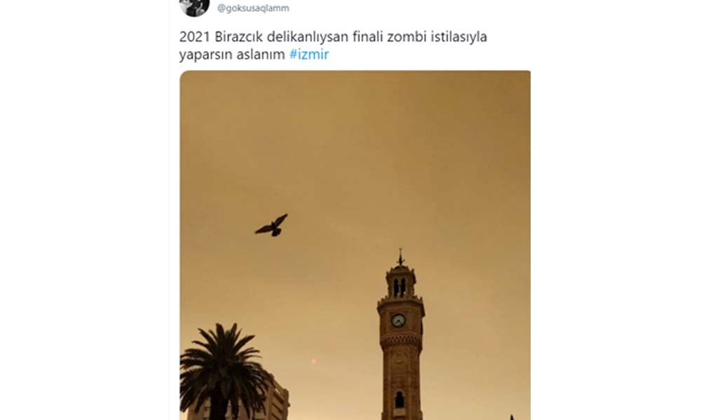 Sosyal medya kullanıcıları gökyüzünün fotoğrafını paylaşarak "Büyük bir tufahlık var", "Zombi filmlerindeki gibi" ifadelerini kullandı.
