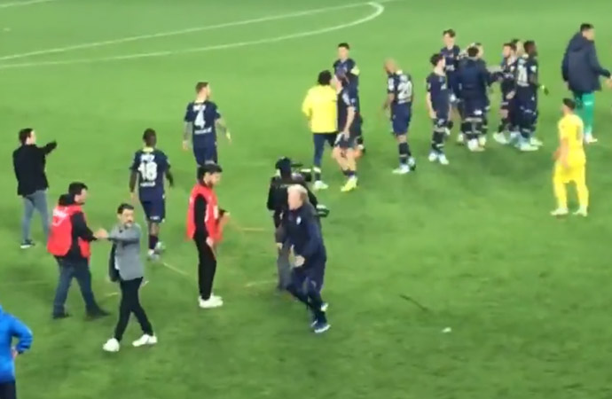 Deneyimli çalıştırıcının maçta 1 gollük katkı sağlayan golcüyü görünce adımlarını hızlandırdı. Futbolcusunun yanına giden teknik adamın öfkesi beden diline yansıdı.