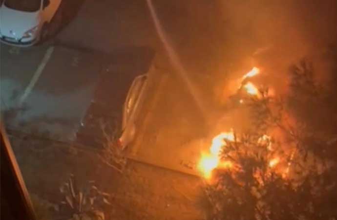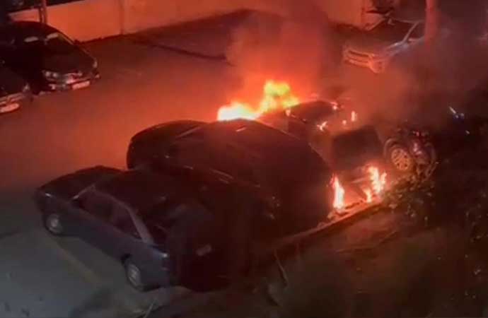DHA’nın aktardığına göre ihbar üzerine olay yerine polis ve itfaiye ekipleri sevk edildi. İtfaiye ekiplerinin müdahalesiyle araçlara sıçrayan yangın kısa sürede söndürüldü.