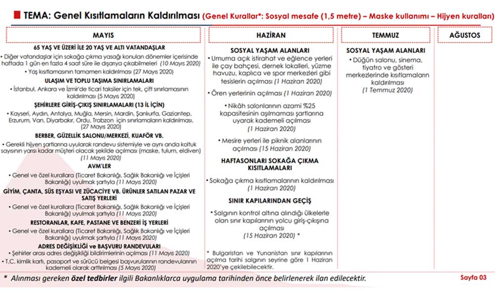 Normalleşme Planı ve aşamalarında sokağa çıkma yasağının tamamen bitmesi 1 Haziran 2020'yi bulacak.