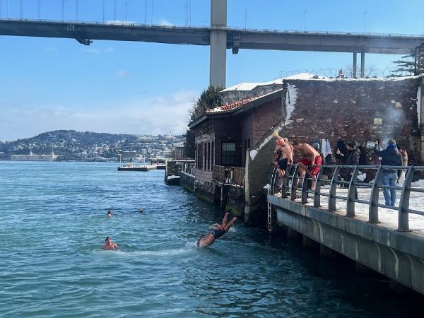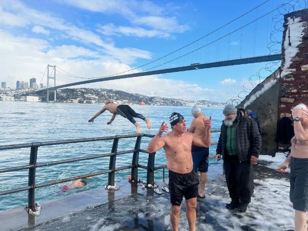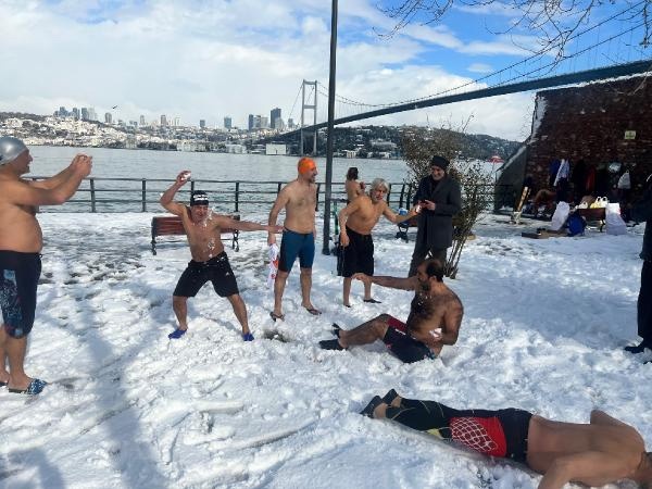İstanbul'da kar yağışı devam ederken kendilerine 'Kuzguncuk Tosbağaları' adını veren 10 kişilik yüzücü grubu Üsküdar Kuzguncuk Sahili'nde toplandı. Yüzücüler denize girmeden önce karın üzerine yatarak kar banyosu yaptı. Ardından Boğaz'ın buz gibi sularına atladı. Dakikalarca suda kalan grup daha sonra yaktıkları ateşte ısınarak sucuk pişirdi.