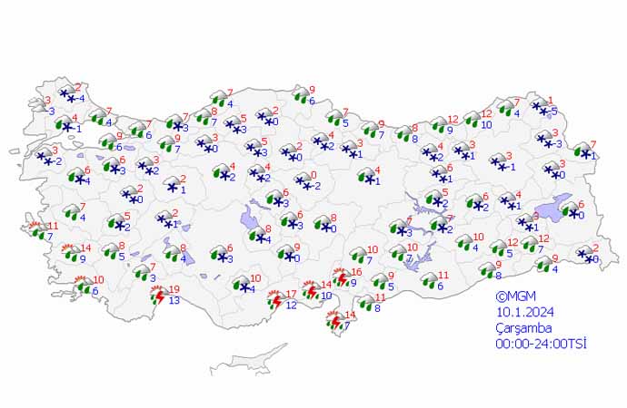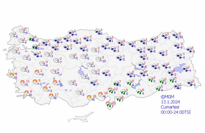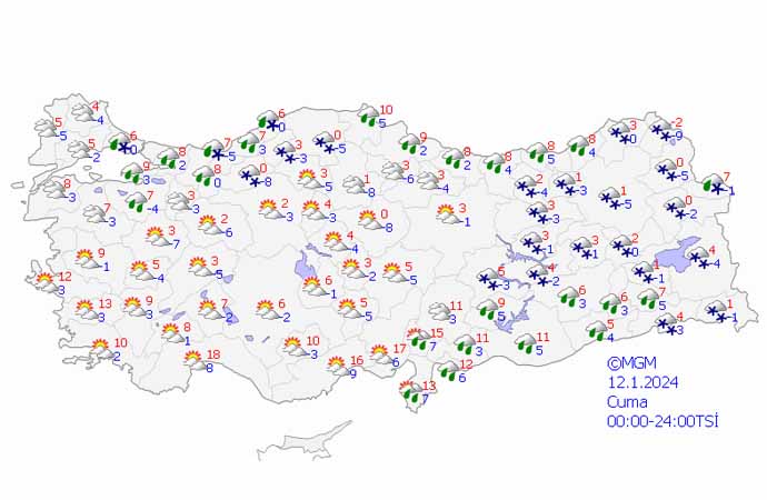 "Karadeniz üzerinden gelen yağışlı havayla birlikte yarın öğle saatlerinden itibaren yurdun kuzey batı kesimlerinden başlayarak karla karışık yağmur ve yer yar kar yağışı olması bekleniyor. Kar yağışı yurdun kuzey bölgelerinde daha yoğun hissedilecek. Marmara, İç Ege, İç Anadolu, Karadeniz ile Doğu Anadolu’nun kuzeyinde yağışların karla karışık yağmur ve kar şeklinde olması bekleniyor. Batı Karadeniz’in iç kesimleri Doğu Anadolu’nun kuzey ve doğusunda kuvvetli olma ihtimali yüksek."