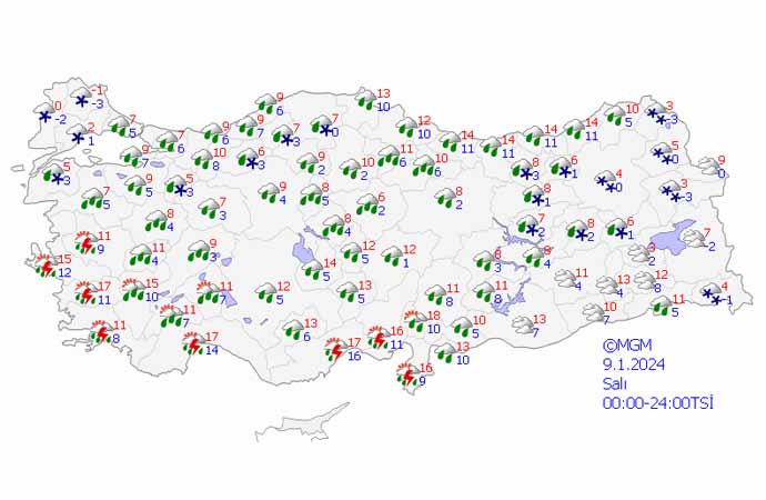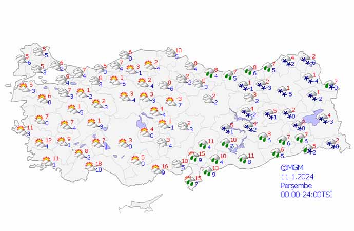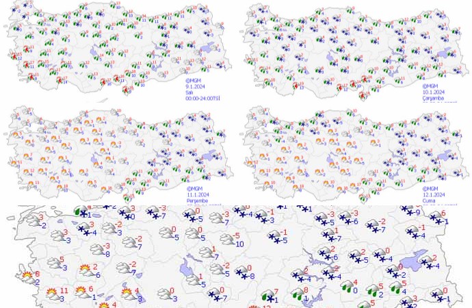 Meteoroloji Genel Müdürlüğü (MGM) tarafından paylaşılan 5 günlük hava durumu şu şekilde: