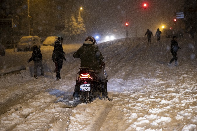 Gündüz aralıklarla yağan kar, akşam saatlerinden itibaren etkisini yoğun bir şekilde artırarak kısa sürede kenti etkisi altına aldı. Başkent'te, cadde ve sokaklar ile parklar beyaza büründü. Kar yağışı araç sürücülerine zor anlar yaşattı. ( Utku Uçrak - Anadolu Ajansı )