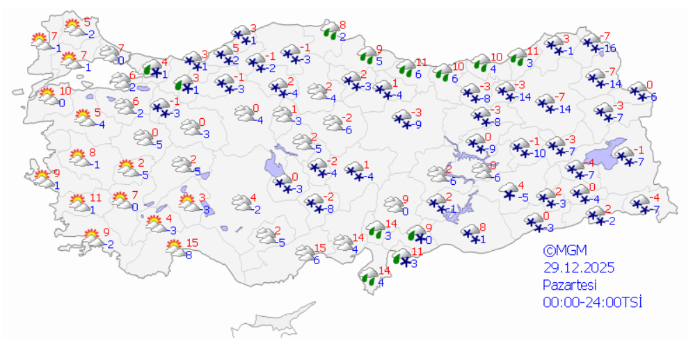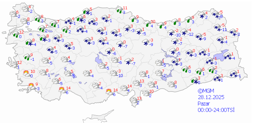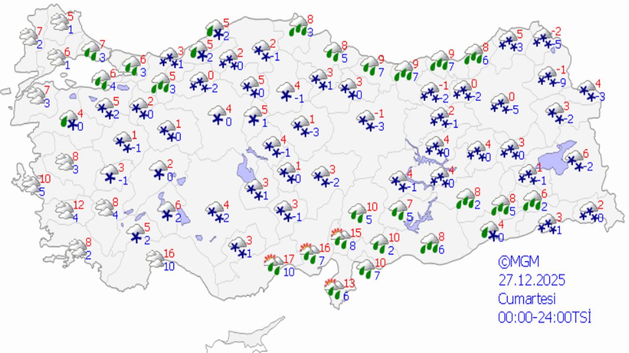 Hava sıcaklıkları kuzey, iç ve doğu kesimler başta olmak üzere yurt genelinde hissedilir derecede (4 ila 10 derece) azalacak. Hafta sonu İstanbul 1, Ankara, Balıkesir ve Bursa -3 dereceleri görecek.