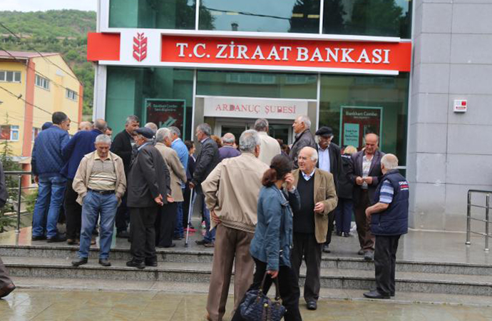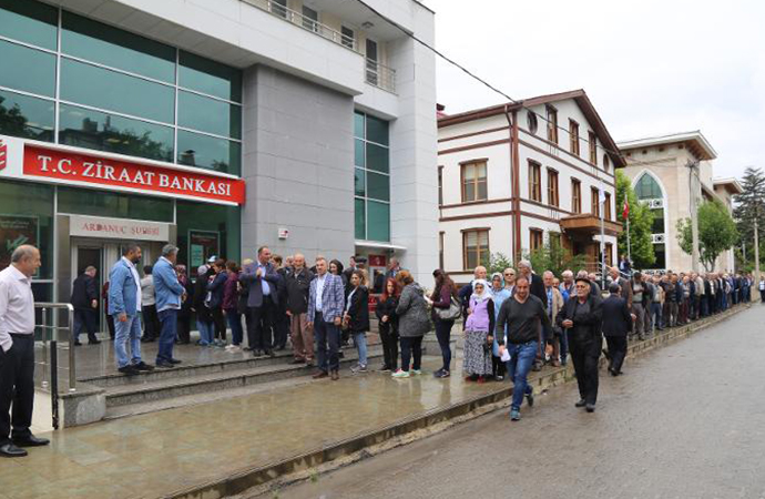 İstanbul'un seçilmiş Belediye Başkan'ı Ekrem İmamoğlu için başlattığı 20 TL'lik bağış kampanyasına Artvin’in Ardanuç ilçesinde yoğun ilgi gösteren vatandaşlar, banka önünde uzun kuyruklar oluşturdu.