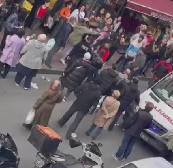 Kadın elindeki çanta ile kendisini iten kişinin kafasına vurdu.