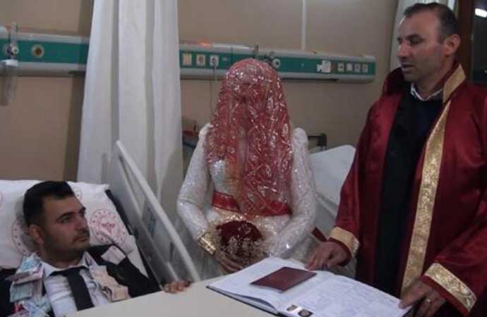 Muhammed Yusuf Gülel’e moral olması için iki ailenin onayı ile nikahın hastanede yapılması için hastane yönetiminden izin alındı.