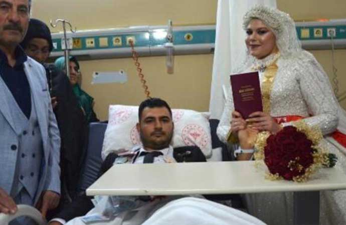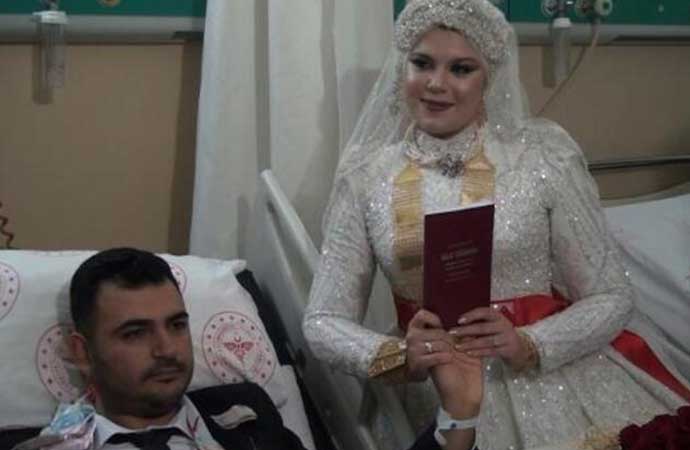 Gelinlikle hastaneye gelen Esra Tut ise “Boşuna hastalıkta, sağlıkta, iyi günde, kötü günde, demiyoruz. Kötü başladık ama umarım bir ömür boyu mutlu oluruz.