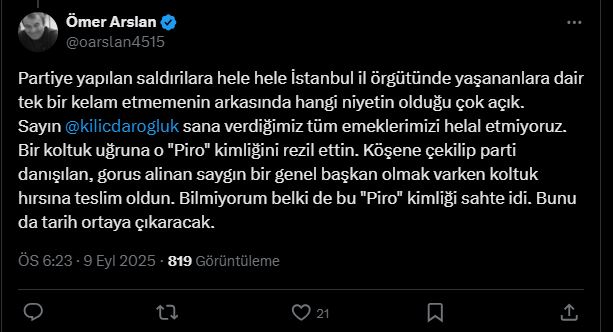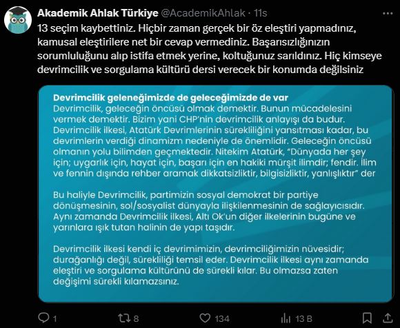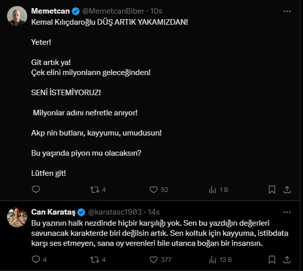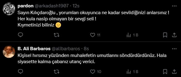 Fakat Kılıçdaroğlu'nun yazdıklarından çok ona gelen tepkiler gündem oldu.
