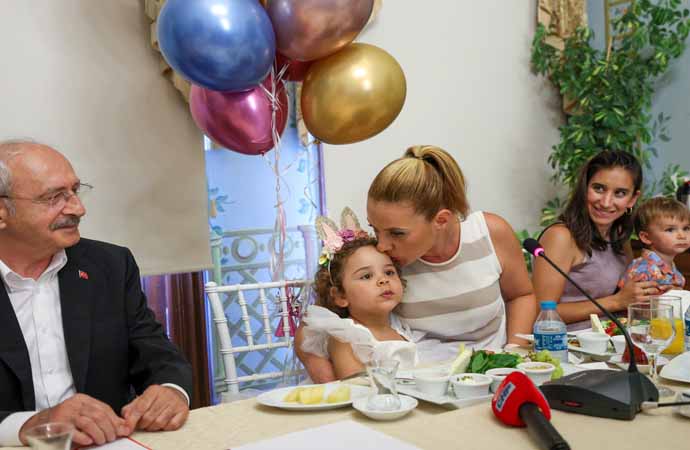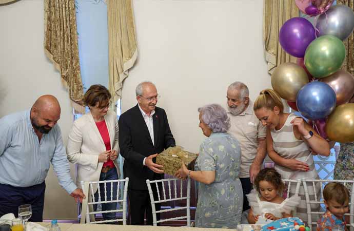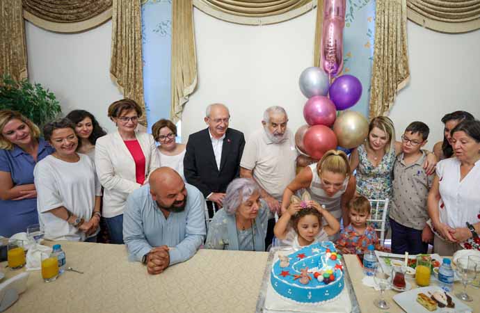 CHP lideri Kılıçdaroğlu, aileler ile birlikte Gezi tutuklusu Tayfun Kahraman’ın kızı Vera, Gezi tutuklusu Mine Özerden’in annesi Halide Özerden ve Gezi tutuklusu Çiğdem Mater’in doğum gününü kutladı.