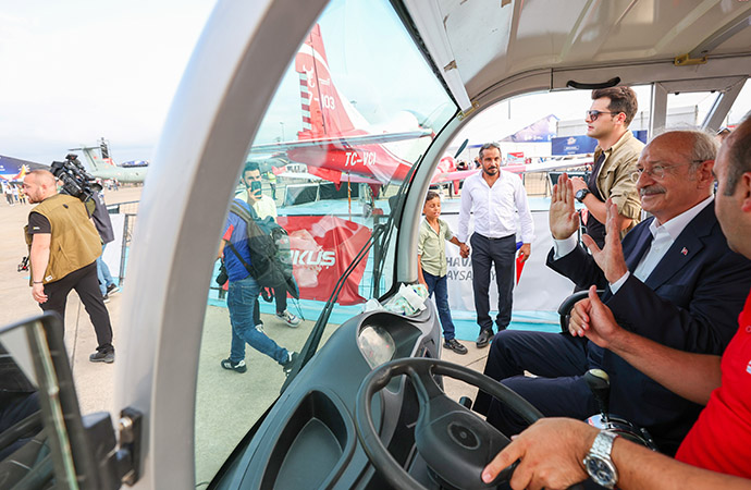 Kılıçdaroğlu'nu, festivalin yapıldığı havalimanında Sanayi ve Teknoloji Bakan Yardımcısı Mehmet Fatih Kacır karşıladı.