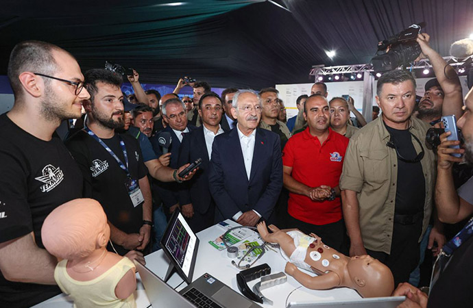 Kılıçdaroğlu, Türkiye Teknoloji Takımı Vakfı (T3 Vakfı) ile Sanayi ve Teknoloji Bakanlığı tarafından düzenlenen ve yönetim kurulu başkanlığını Selçuk Bayraktar’ın yaptığı festivalde gençler tarafından havacılık, uzay ve teknoloji alanlarında sunulan projeler hakkında bilgi aldı.