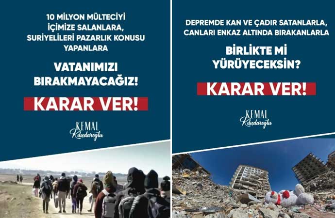 Millet İttifakı'nın Cumhurbaşkanı Adayı Kemal Kılıçdaroğlu’nun 'Karar ver' isimli kampanyasının yeni görselleri ortaya çıktı. Kampanya görsellerinin kısa süre sonra reklam panolarında yer alması bekleniyor.