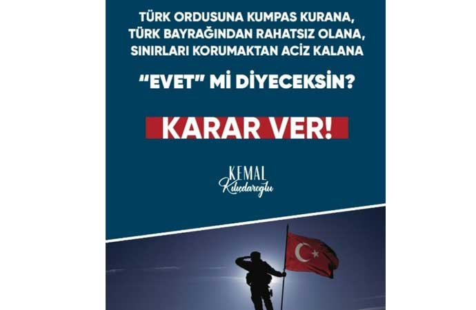 Türk ordusuna kumpas kurana, Türk bayrağından rahatsız olana, sınırları korumaktan aciz olana “Evet” mi diyeceksin? Karar ver!