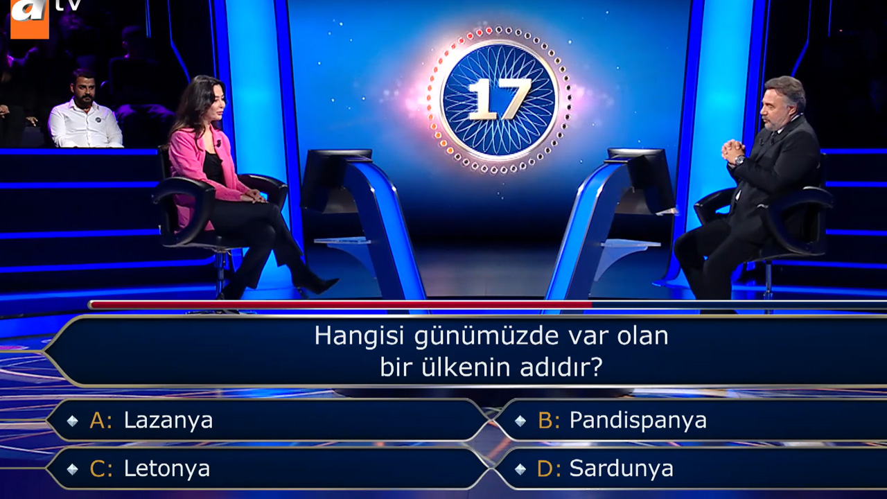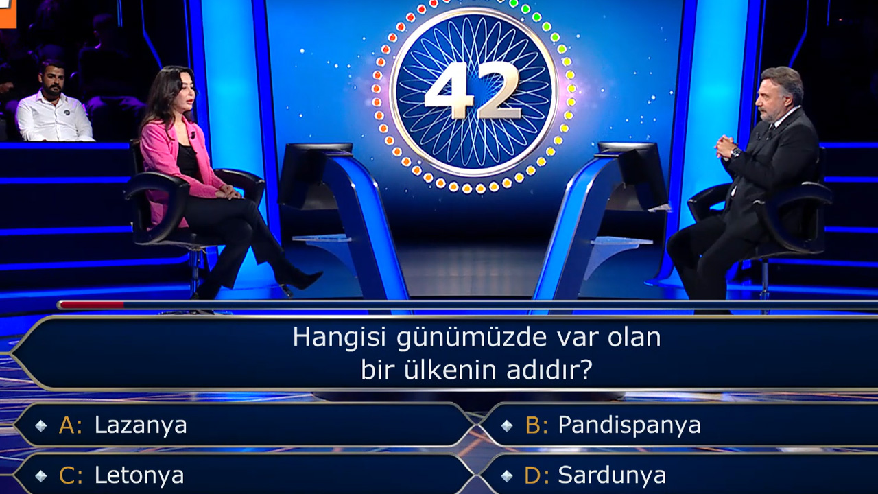 A: Lazanya ve C: Letonya şıkkı arasında "C" yanıtını veren yarışmacı doğru cevabı bildi.