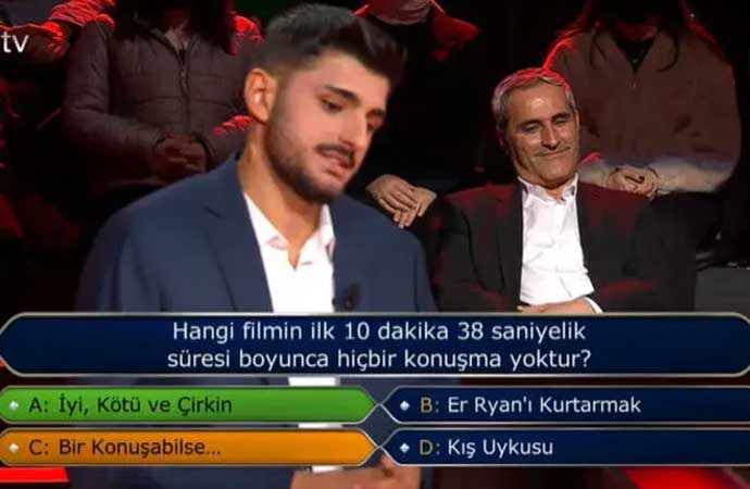Filmin ismi üzerinden mantık yürüten yarışmacı İyi, Kötü ve Çirkin, Er Ryan'ı Kurtarmak, Bir Konuşabilse… ve Kış Uykusu seçeneklerinden "Bir Konuşabilse…" şıkkını seçti ancak doğru şık İyi Kötü ve Çirkin oldu.