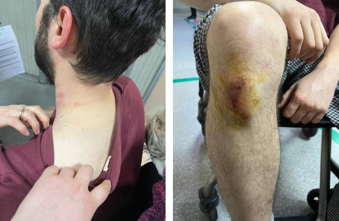 "İlk olarak sokakta saldırıya uğradım, boğazımı sıktılar. İkinci saldırı apartman içerisinde oldu. Bu kez kardeşleri geldi. Dairemin elektriğini kesmişler, ben de aşağı indim. Kendileri bana 'Biz ev sahibiyiz' dediler, kendilerine davanın sürdüğünü söyledim. Baktım olacak gibi değil 112'yi aramaya çalıştım, o an telefonu elimden çekip saldırmaya başladılar."