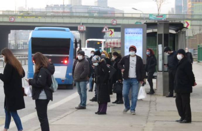 İstanbul'da kısıtlamanın kaldırılmasının ardından işe gitmek için evlerinden çıkanlar otobüs ve minibüs duraklarına geldi.