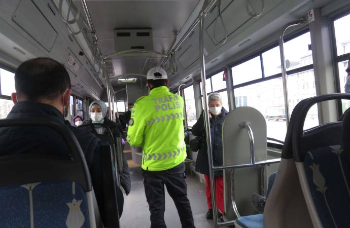Kısıtlamanın kalktığı cumartesi günü trafik ekiplerinin toplu taşıma araçlarında denetimleri de devam etti. Ekipler evrak kontrolü yaptıktan sonra vatandaşlara sosyal mesafe ve maske konusunda uyarılarda bulundu.