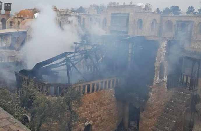 Selahaddin Eyyubi'nin konağı olarak kullanılan, poliüretan köpükten duvarların bulunduğu bölümdeki yangın üzerine, bölgeye çok sayıda ekip gönderildi.