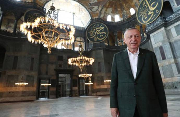 AKP'li Cumhurbaşkanı Erdoğan, Danıştay'ın 1934 tarihli müzeye dönüştürülmesine ilişkin kararı iptalinin ardından Ayasofya'nın idaresinin Diyanet İşler Başkanlığına devredilerek ibadete açılması kararını imzaladı.