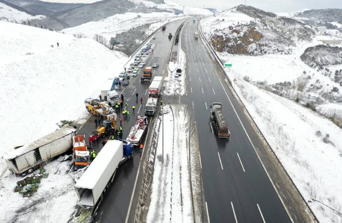 kar yağışının etkili olduğu Kuzey Marmara otoyolunun Arnavutköy mevkisi Ankara istikametinde 5 tır, 2 yolcu otobüsü, 1 kar küreme aracı ve 2 otomobilin karıştığı zincirleme trafik kazası meydana geldi.