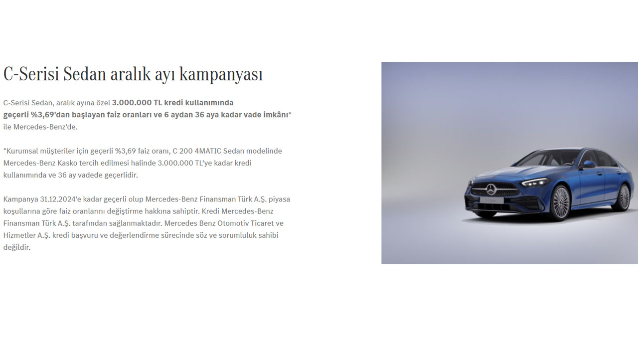 Araba sahibi olmak isteyen birçok vatandaş tarafından otomobil firmalarının aralık ayına özel kampanyaları araştırılıyor. Alman otomotiv devi Mercedes'in de dikkat çeken kampanyaları bulunuyor. İşte, Mercedes'in kampanyalarından bazıları...