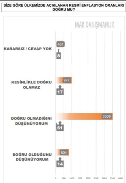 TÜİK'in açıkladığı 'enflasyon' rakamlarını doğru bulmayanları oranı yüzde 61, doğru olduğunu düşünüyorum diyenlerin oranı ise yüzde 14.