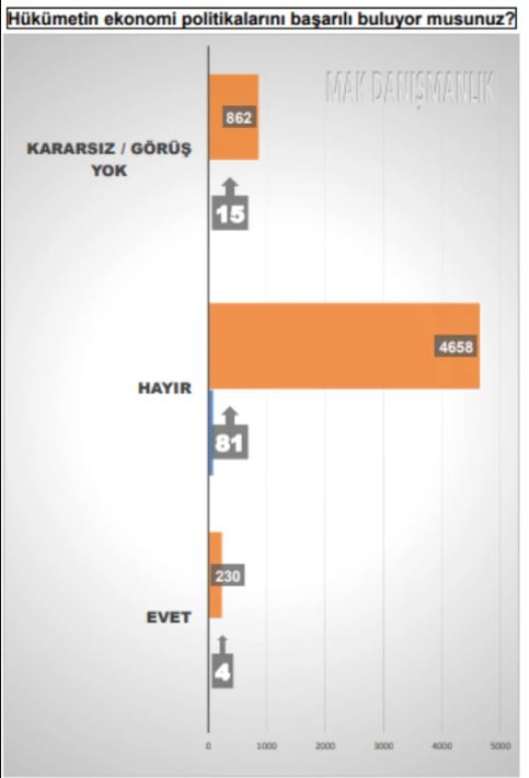 Hükümetin ekonomi politikalarını başarılı bulanların sayısı yüzde 4 iken başarılı bulmayanların oranı ise yüzde 81 oldu.