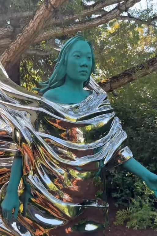 "Roma geleneğini geri getirerek eşinizin heykelini yapmak" notu eşliğinde paylaşılan gönderide Chan, heykelin yanında sabahlığıyla ayakta dikilirken ve heykelin renkleriyle uyumlu kupasından bir yudum alırken görülüyor.