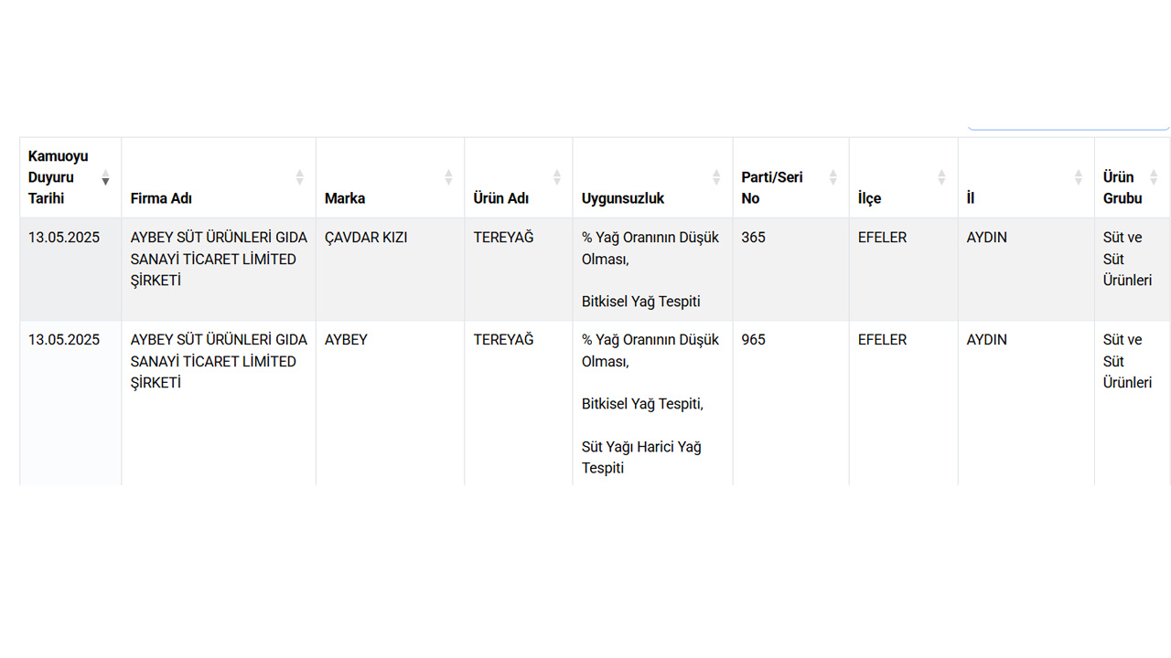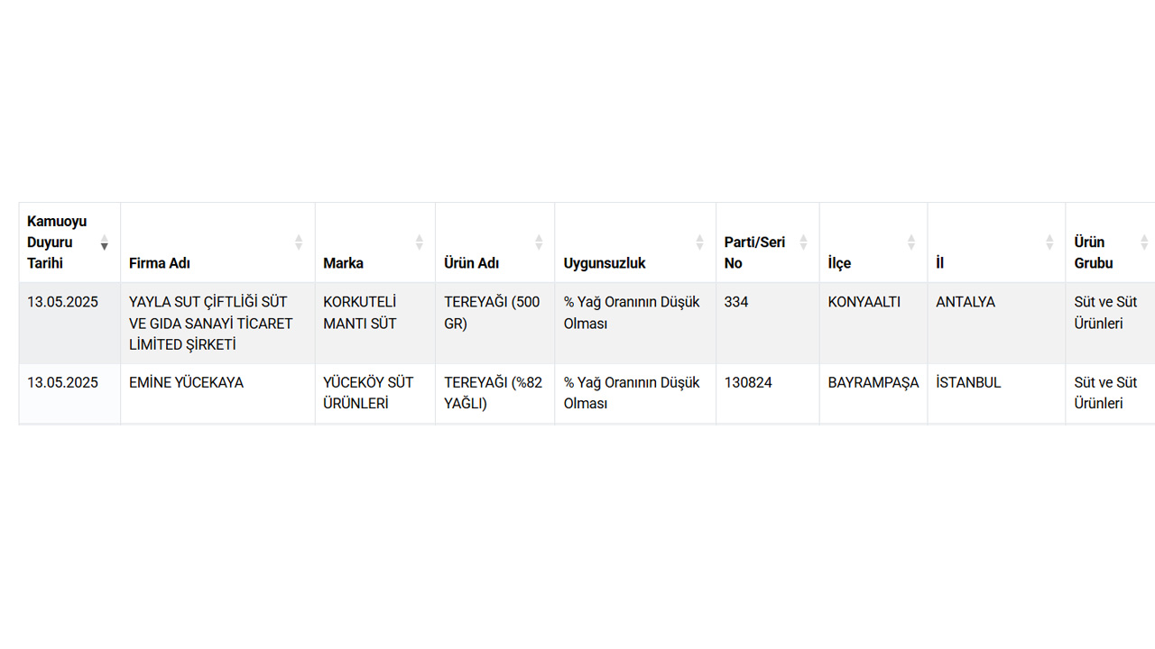 Söz konusu listeye 13 Mayıs Salı günü eklenen tereyağı markaları şaşkınlığa neden oldu.
