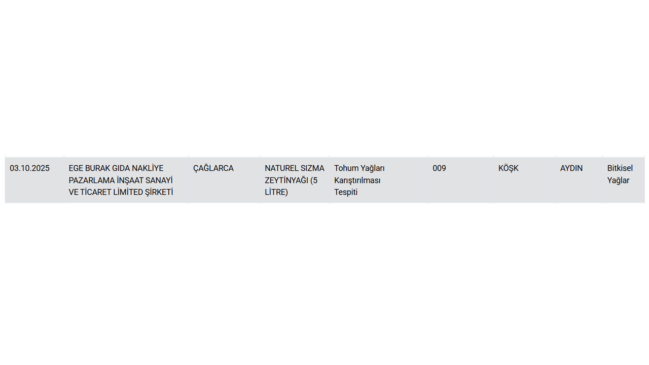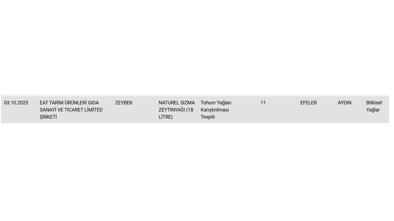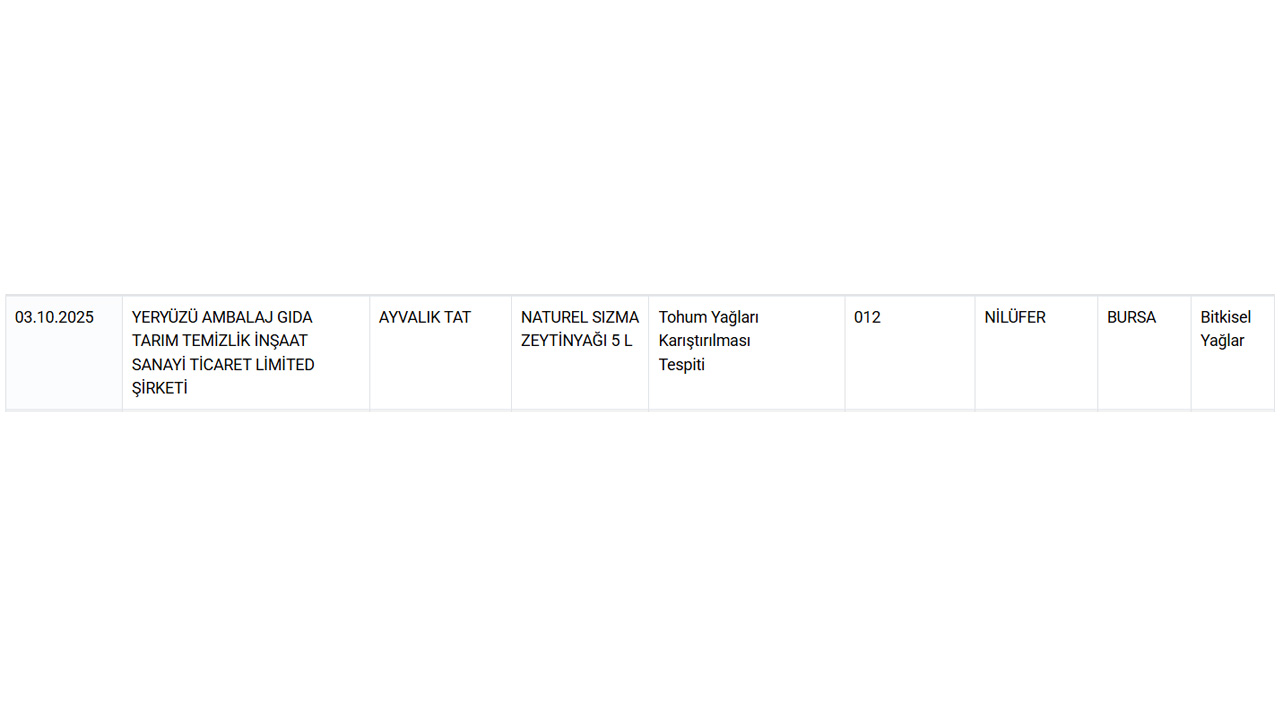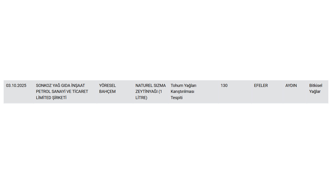 İşte, ‘Taklit veya Tağşiş Yapılan Gıdalar’ listesine 3 Ekim’de eklenen zeytinyağı markaları…