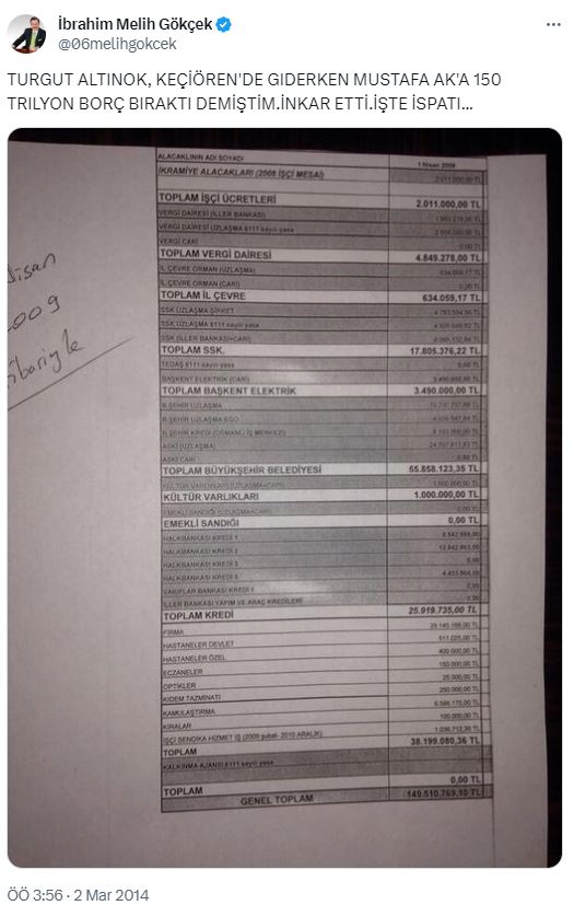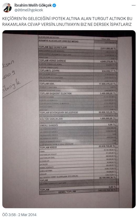 2014'te Büyük Birlik Partisi'nden Keçiören Belediye Başkanlığı'na aday olan ve Mustafa Ak'a karşı kaybeden Altınok hakkında Gökçek iddialarını sürdürerek, "Keçiören'de bir önceki dönemde belediye başkanı olan arkadaş yeniden aday oldu. Ama bazı gerçekleri bilmeniz lazım. Şimdi size bir sual soracağım. Turgut Altınok, Belediye Başkanlığından giderken ne kadar borç bıraktı biliyor musunuz? Tam 150 trilyon borç bıraktı." demişti.