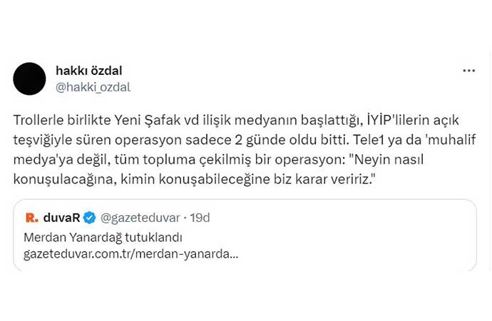 Merdan Yanardağ’ın tutukluğuna tepki yağdı: "İYİ Partililer rahatlasın"