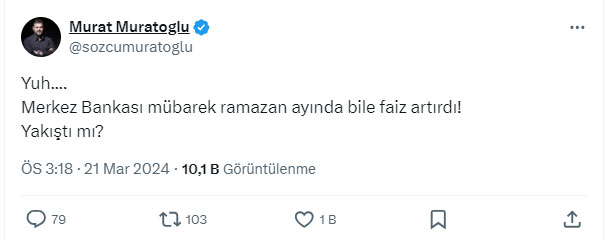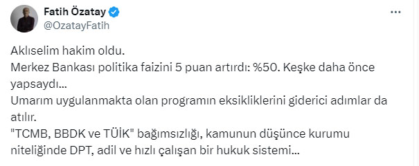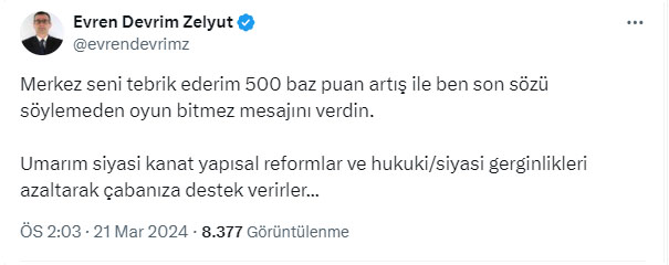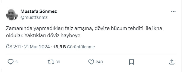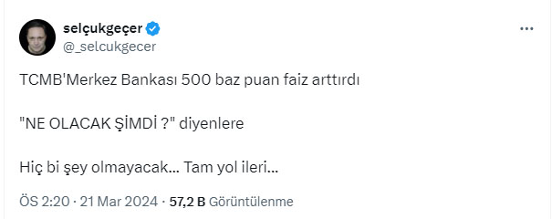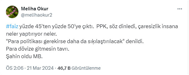 AKP'li Cumhurbaşkanı Recep Tayyip Erdoğan'ın Nas inadıyla bozulan ekonomiyi düzeltmek için atılan adımlar boşa çıkıyor. Nas inadıyla başlayan faiz indirimi serüveni genel seçimlerin ardından sonlanmıştı. AKP'li Cumhurbaşkanı Erdoğan'ın Nas var nas çıkışını yaptığı tarihte faiz yüzde 19'du. Bu çıkıştan sonra faiz yüzde 8.5'e kadar çekildi. Dolar kuru ise faizin yüzde 19 olduğu tarihte 7 lira bandından işlem görüyordu. Faizin 8.5'e çekildiğinde ise dolar 23 liraya kadar yükselmişti. Dolar kuru daha fazla artmasın diye TCMB'nin arka kapısından yapılan döviz satışları nedeniyle kasada kara delikler oluşurken döviz kurlarının da yükselmesi engellenemedi. Genel seçimlerden sonra başlayan faiz artırımları da kasadaki paranın suyunun çekmesi nedeniyle işe yaramadı. Faizin 50 liraya yükseltildiği 21 Mart 2024 tarihinde yani yerel seçimlerden 10 gün önce dolar 32 lira bandından alıcı buluyor. Banka kurlarında ise dolar 33 lirayı aşmış durumda. Merkez Bankasının faiz kararını yorumlayan Meliha Okur, AKP'nin Nas inadıyla bozulan ekonomiye değinerek, "Çaresizlik insana neler yaptırıyor neler" dedi.