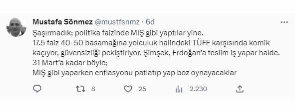132 gün görevde kalan Naci Ağbal olayı piyasaları oldukça şaşırtmıştı. Çünkü 7 Kasım 2020’de Resmî Gazete’de yayımlanan Cumhurbaşkanı kararı ile Merkez Bankası Başkanı Murat Uysal görevden alınmış yerine Naci Ağbal atanmıştı. Ancak 20 Mart 2021’de Resmî Gazete’de yayımlanan Cumhurbaşkanı kararı ile tekrar görevden alınmıştı. Nedenini kimse bilmiyor. Özel bir devlet sırrı olduğu kesin. Gelecek yıllarda anca öğreniriz. Hepsinin tarzı, sınavı, taktiği ve uygulaması farklıydı. Peki şimdi ki ekonomi yönetimi ne yapmak istiyor? Öncelikle şunu söylemeliyim, duruşlarıyla verdikleri mesaj şu: “Biz politikacı değil, bürokratız.” Ondan sebep ortada çok görünmüyorlar. Şimdilik. TCMB, 27 ay aradan sonra 22 Haziran’da politika faizini yüzde 15’e yükselterek 650 baz puan faiz artırdı. 20 Temmuz’da yüzde 17,5’e yükselterek 250 baz puan faiz artırdı. 24 Ağustos’ta yüzde 25’e yükselterek 750 baz puan faiz artırdı.