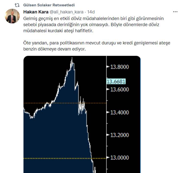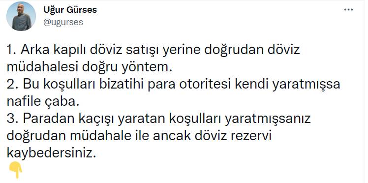 Ziraat Bankası’nın eski Genel Müdür Yardımcısı ve Halkbank Yönetim Kurulu eski Murahhas Üyesi Şenol Babuşcu, sosyal medya hesabından, "Merkez Bankası müdahalesi: Yangına bir kova su dökmek…" paylaşımını yaptı. Ekonomistler ise şunları dedi: