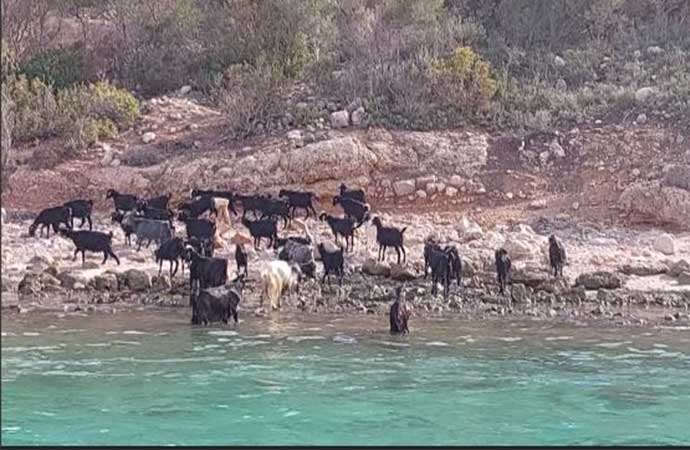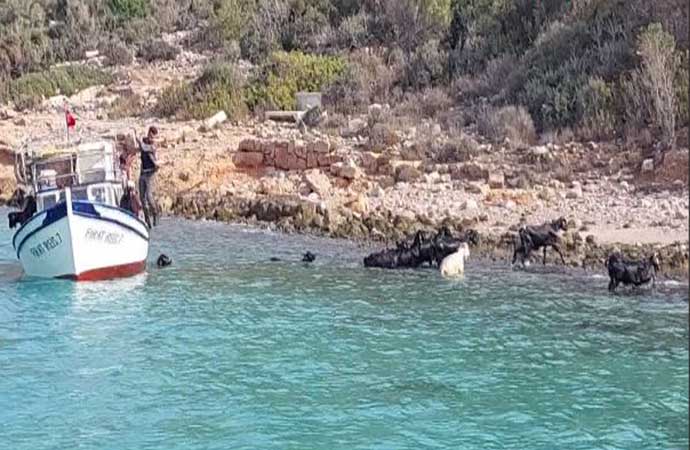 Bir süre adaya bırakılan keçilere, zaman zaman su da götürülüyor. Dana Adası'na yaklaşınca tekneden denize atılan keçiler yüzerek, karaya çıkıyor.