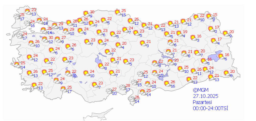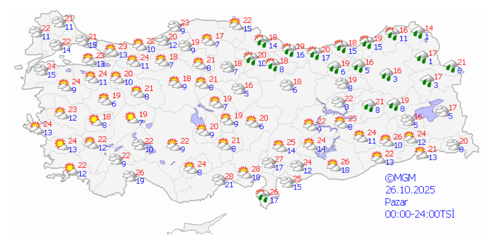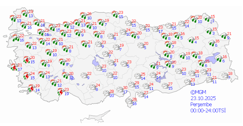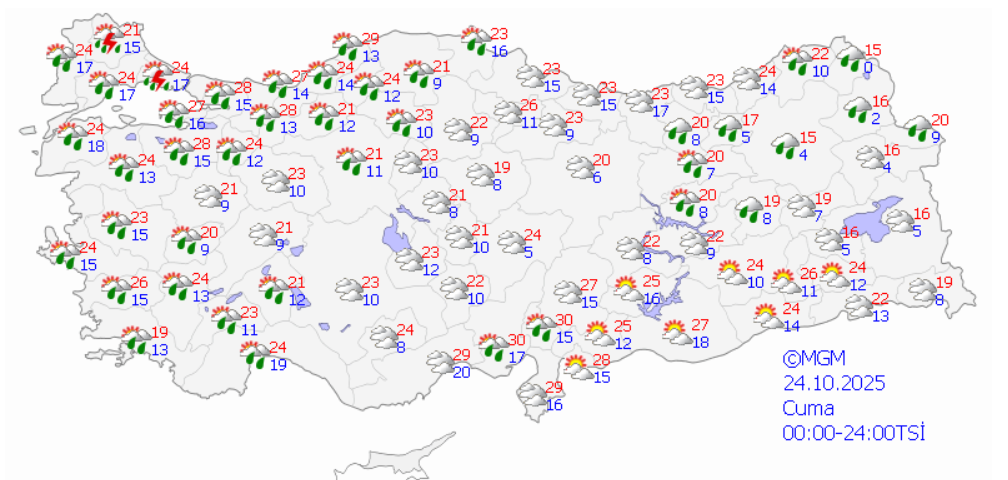 Meteoroloji, Türkiye'nin kuzeybatı kesimlerinde kuvvetli ve gök gürültülü sağanak uyarısında bulundu. Genel Müdürlükten yapılan açıklamaya göre, Edirne ve Kırklareli'nin güneyi, Tekirdağ'ın batısı, Balıkesir'in batı kıyıları ile İzmir ve Çanakkale çevrelerinde kuvvetli sağanak ve gök gürültülü sağanak bekleniyor.